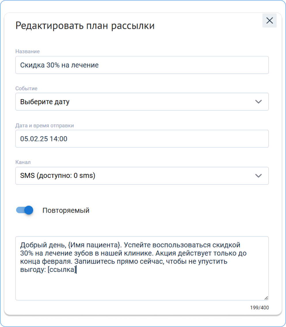 Каждое сообщение должно соответствовать задачам стоматологии, можно разработать множество сценариев рассылок, ориентированных на конкретный бизнес-процесс. Однако есть четыре вида рассылок, которые пригодятся каждой клиники: